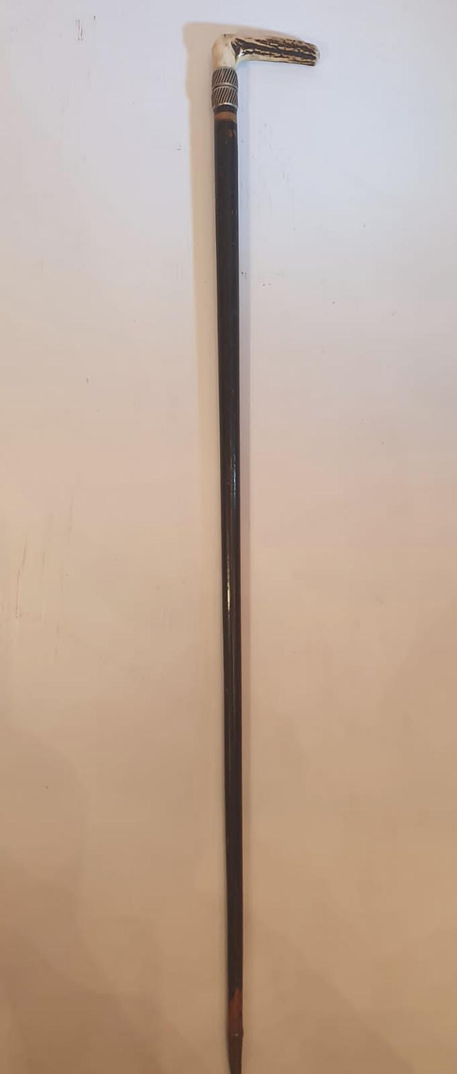 19th Century Horn Handled & Silver Mounted Walking Stick
