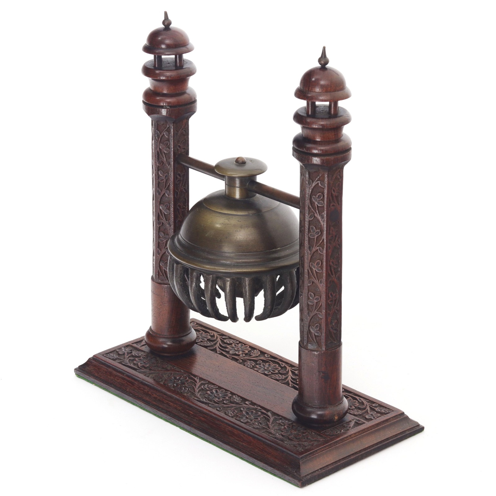 19th Century Indian Bronze Elephant or Claw Bell On Carved Stand (1 of 1)
