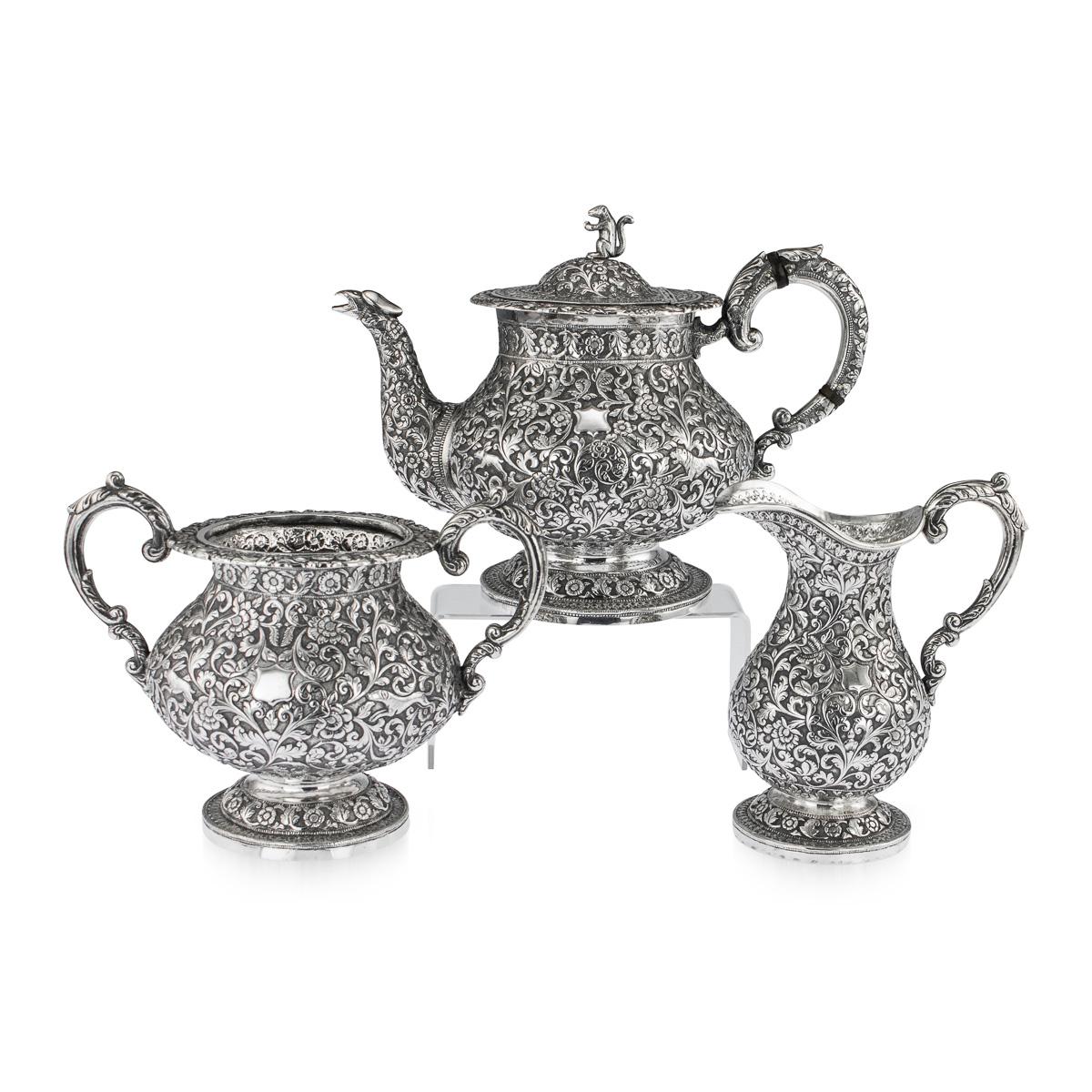19th Century Indian Cutch Solid Silver 3 Piece Hunting Tea Set c.1890