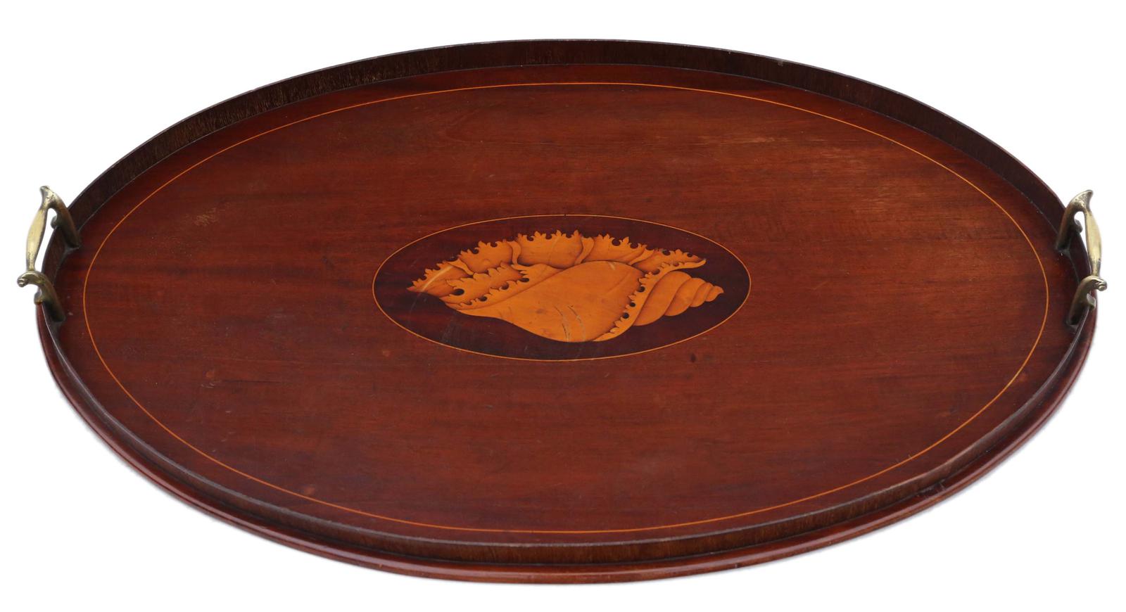 19th Century Inlaid Mahogany Oval Tea Serving Tray (1 of 4)