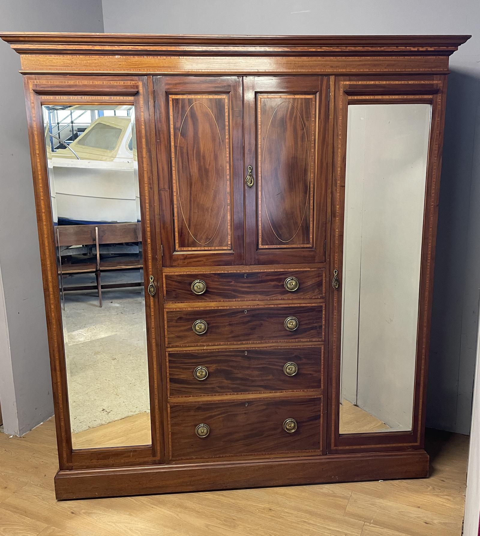 19th Century Inlaid Mahogany Sheraton Revival Country House Compactum Wardrobe