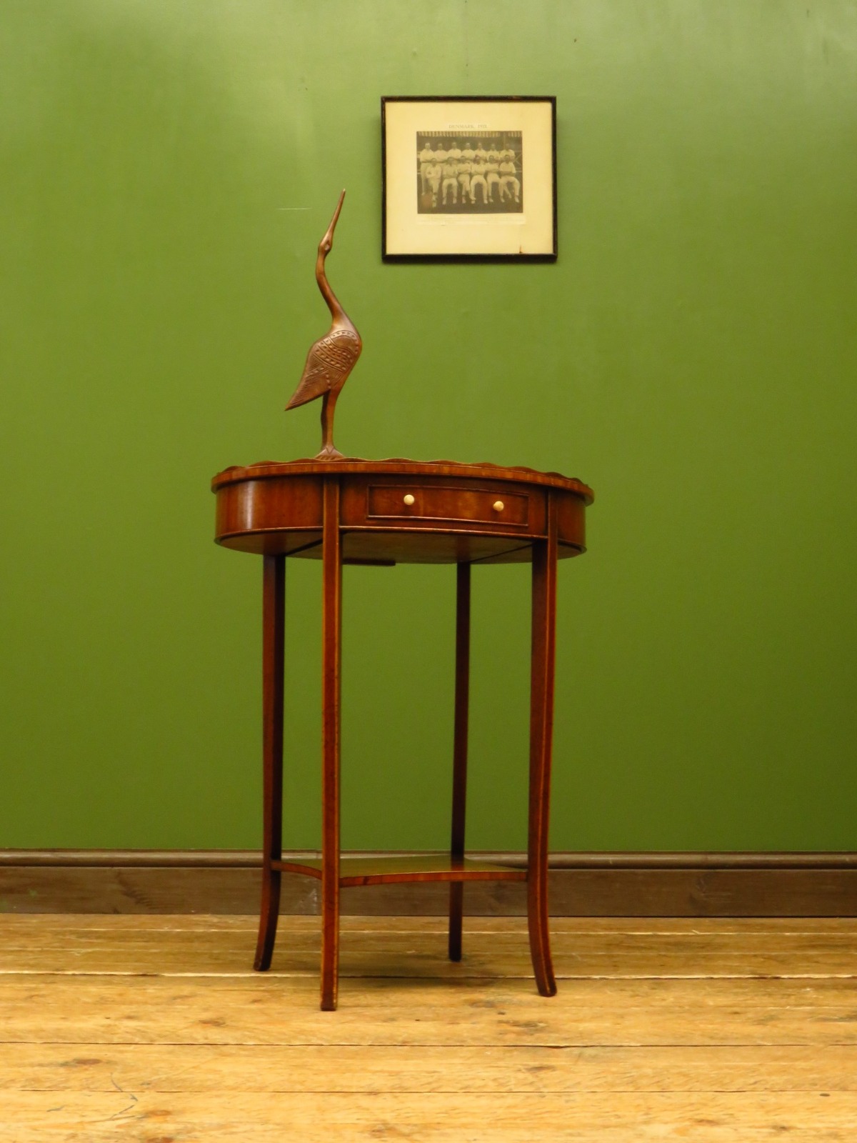 19th Century Inlaid Mahogany Strung Oval Drum Top Table with Shell Motif