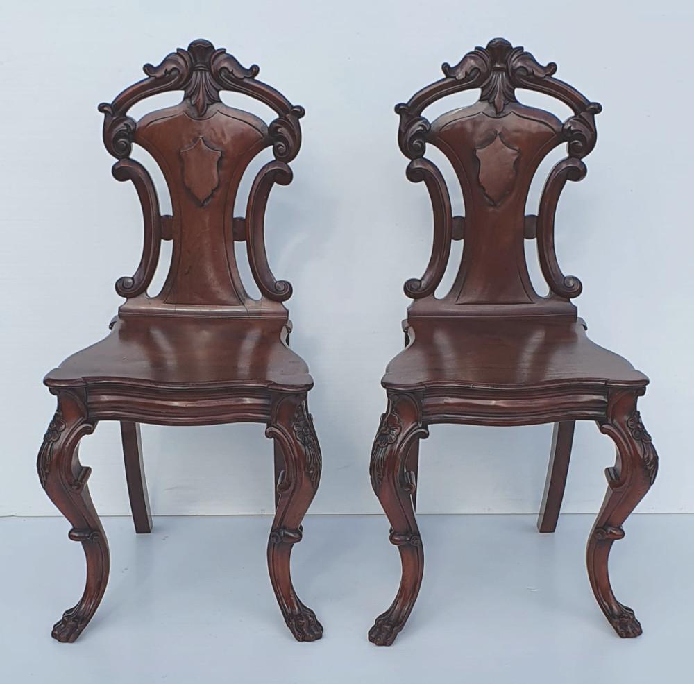 19th Century Irish Mahogany Pair of Hall Chairs Attributed to Strahan