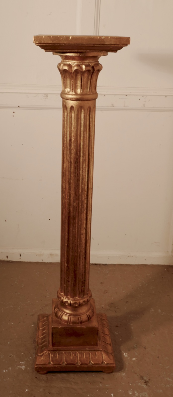 19th Century Italian Carved Giltwood Column Display Pedestal