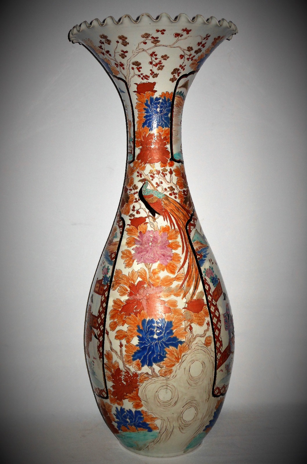 19th Century Japanese Fluted Rim Floor Vase