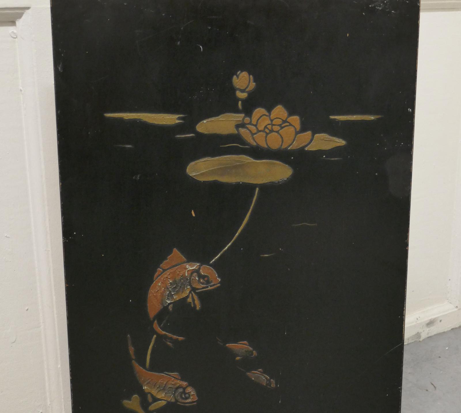 19th Century Japanese Lacquer Fire Screen, Decorated with Carp