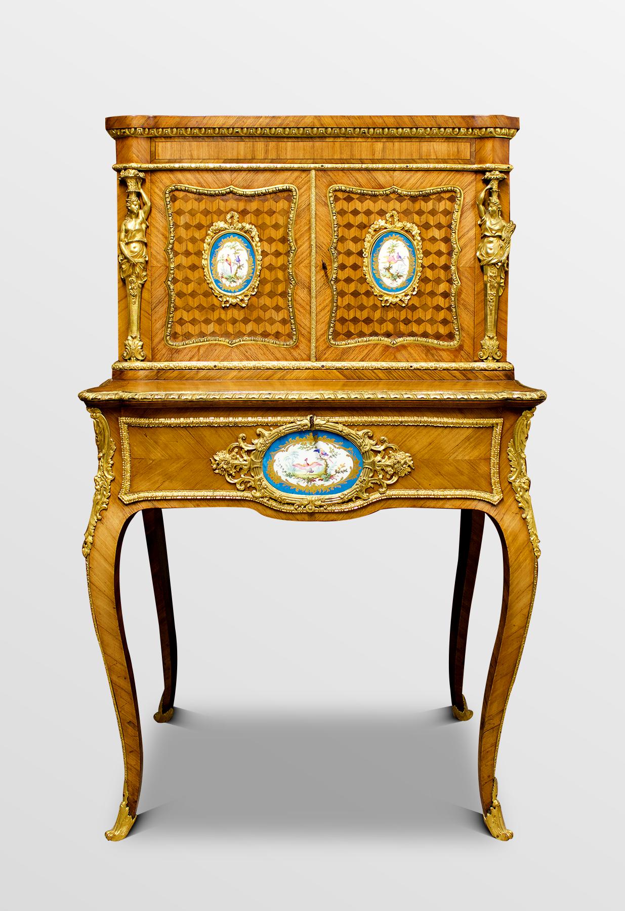 19th Century Kingwood Bonheur Du Jour with Porcelain Plaques (1 of 9)