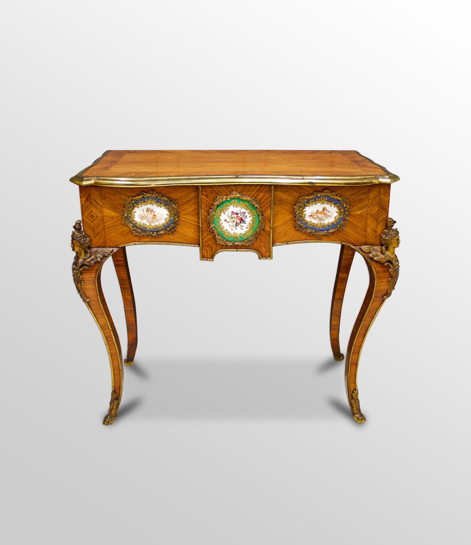 19th Century Kingwood Side Table with Porcelain Plaques