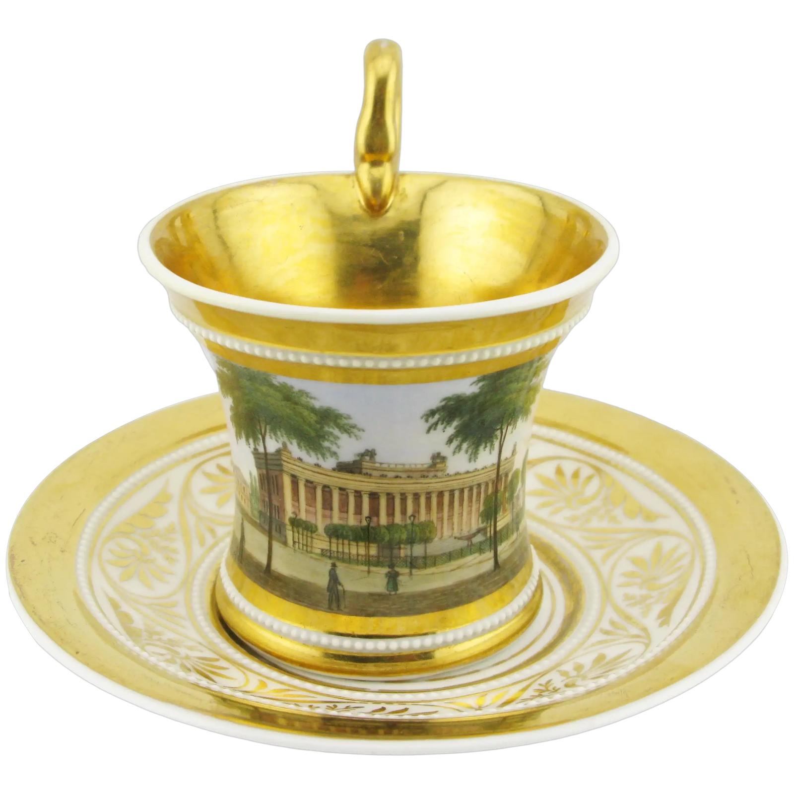 19th Century KPM Topographical Porcelain Cup & Saucer Neues Museum Berlin
