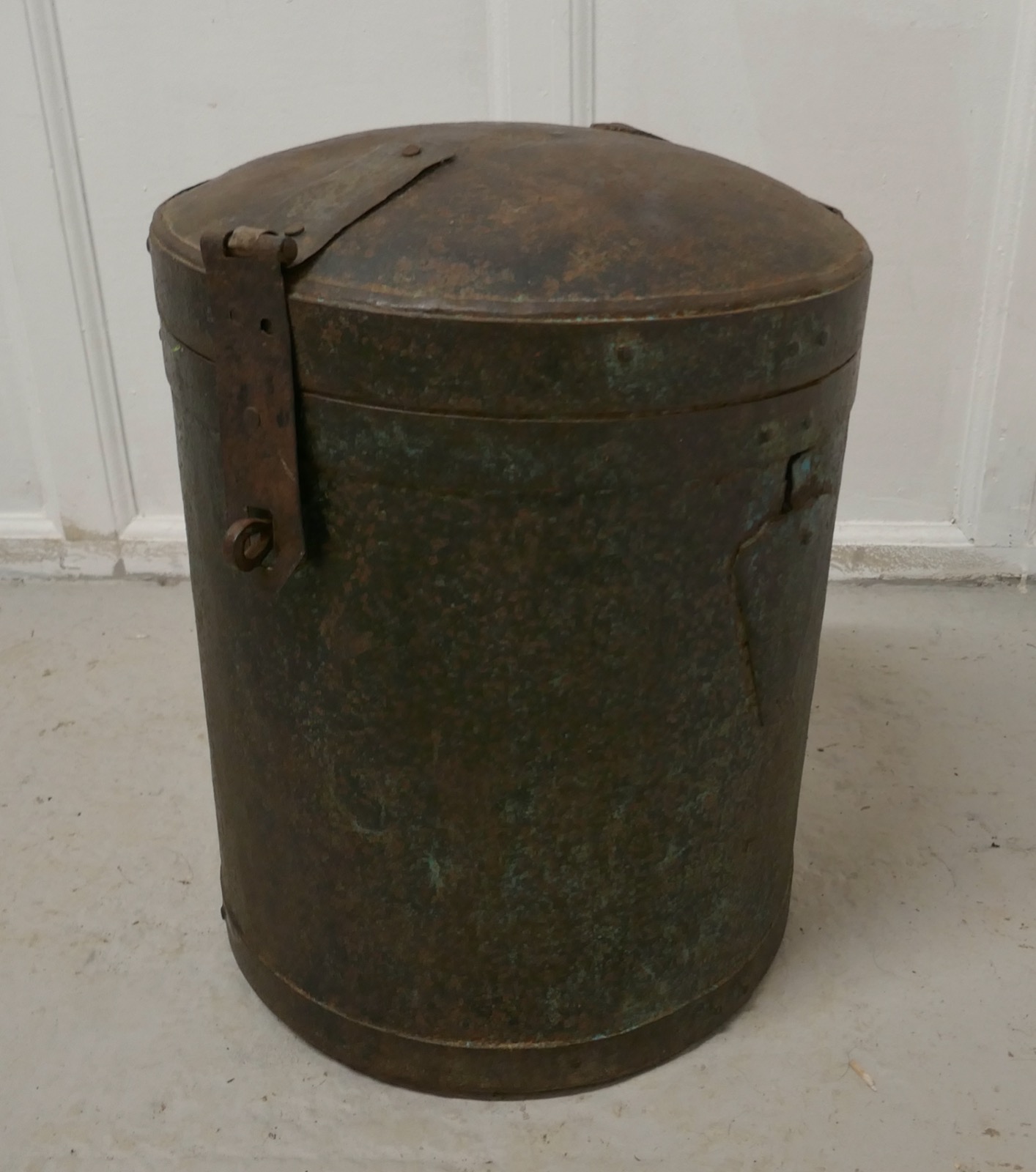 19th Century Large Heavy Metal Lockable Grain Storage Bin