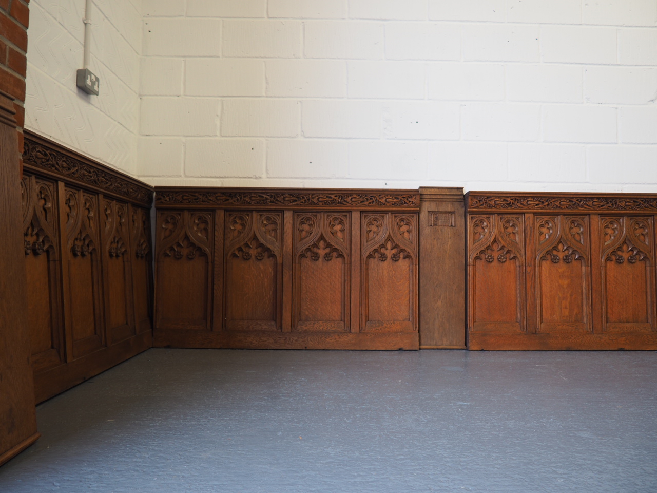 19th Century Large Oak Church Panels Beautifully Carved Set of 4 with 2 'End' Panels