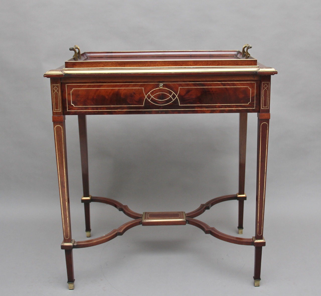 19th Century Mahogany & Brass Inlaid Tray Table