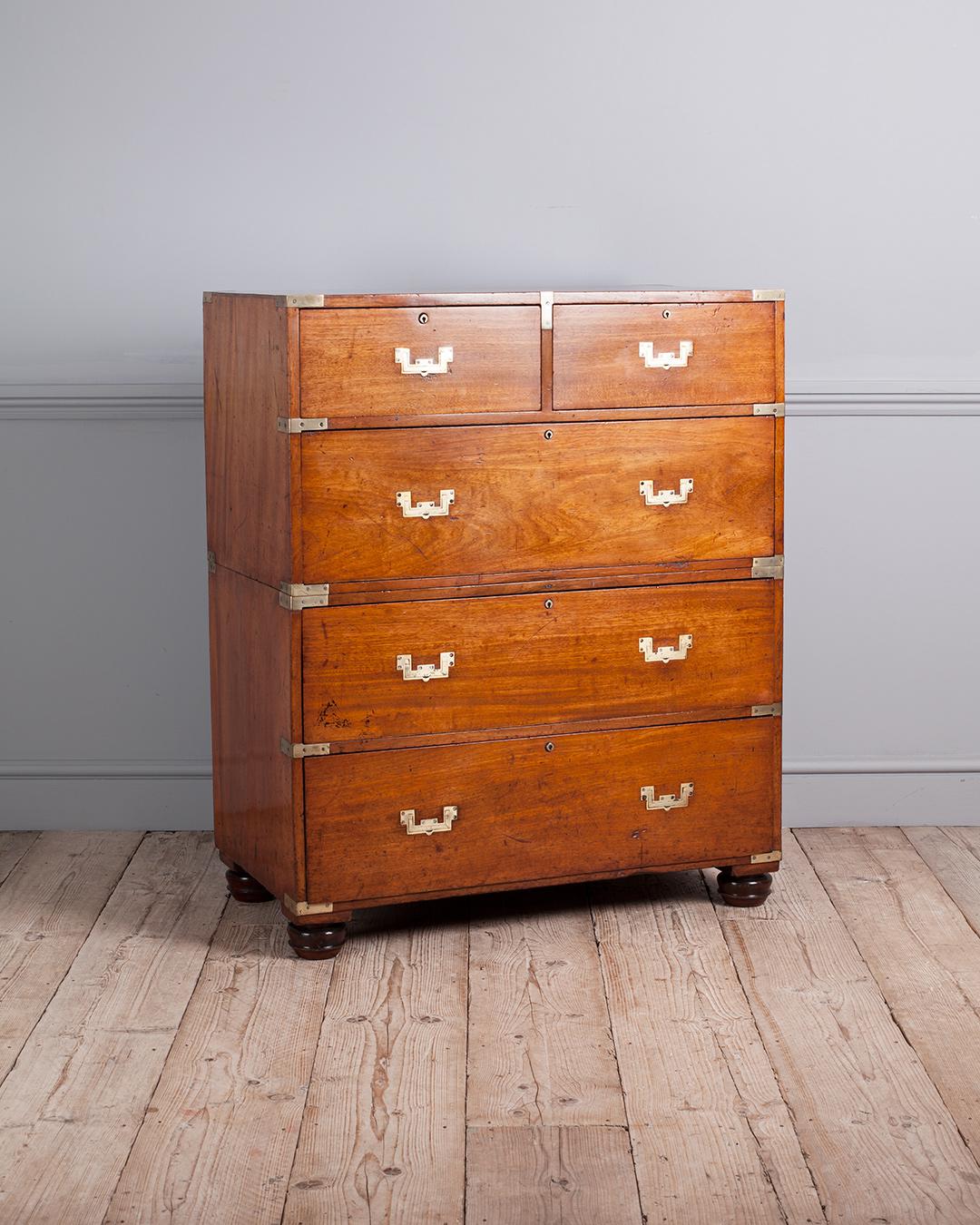 19th Century Mahogany Campaign Chest with Inset Brass Handles