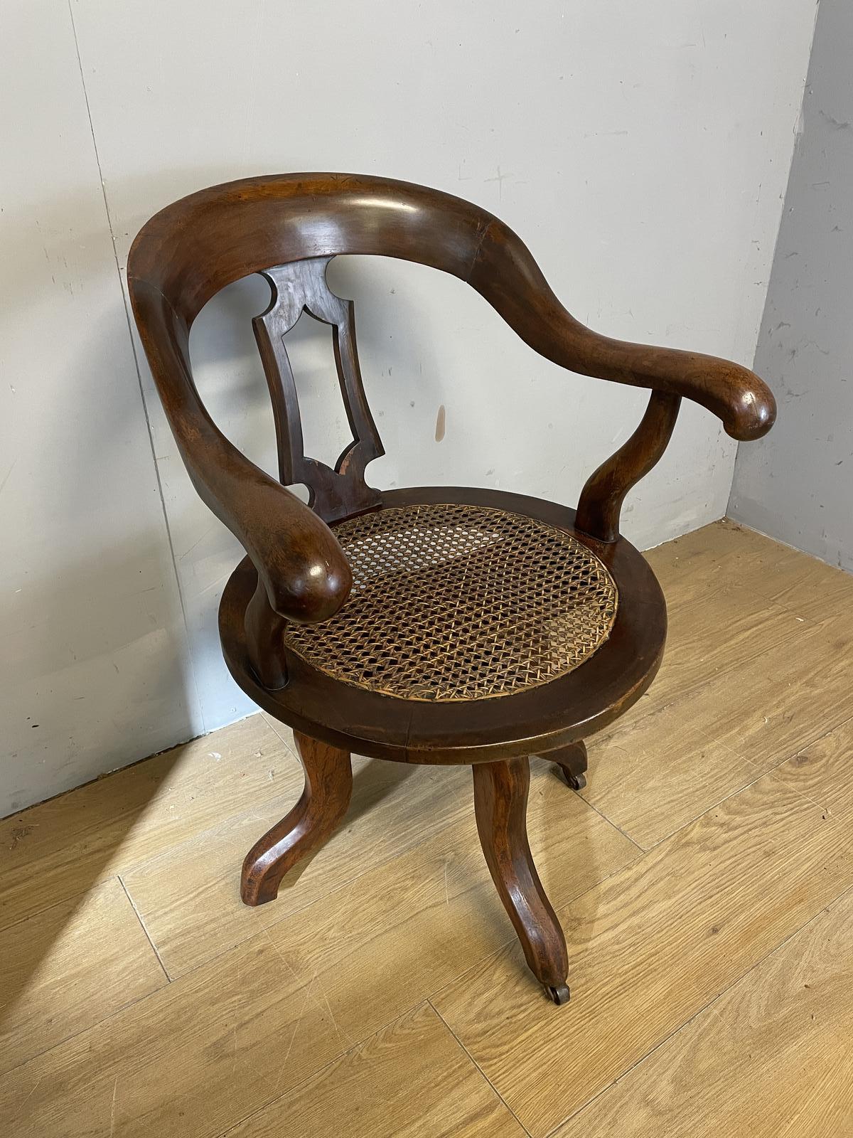 19th Century Mahogany Cane Seated Revolving Desk Chair