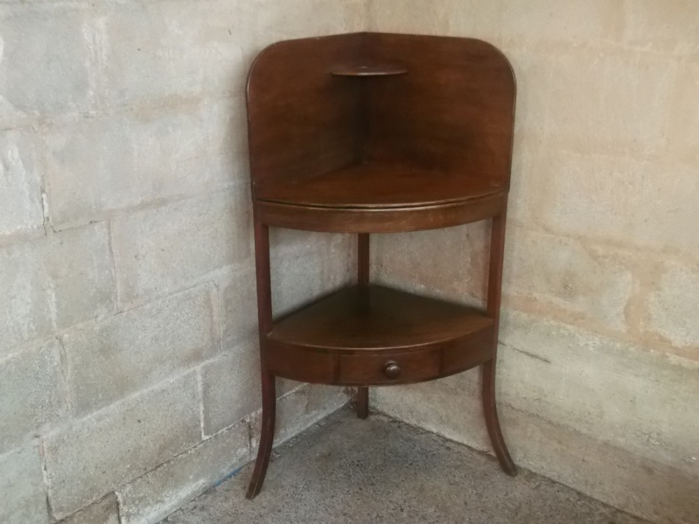 19th Century Mahogany Corner Washstand with cover & drawer beneath