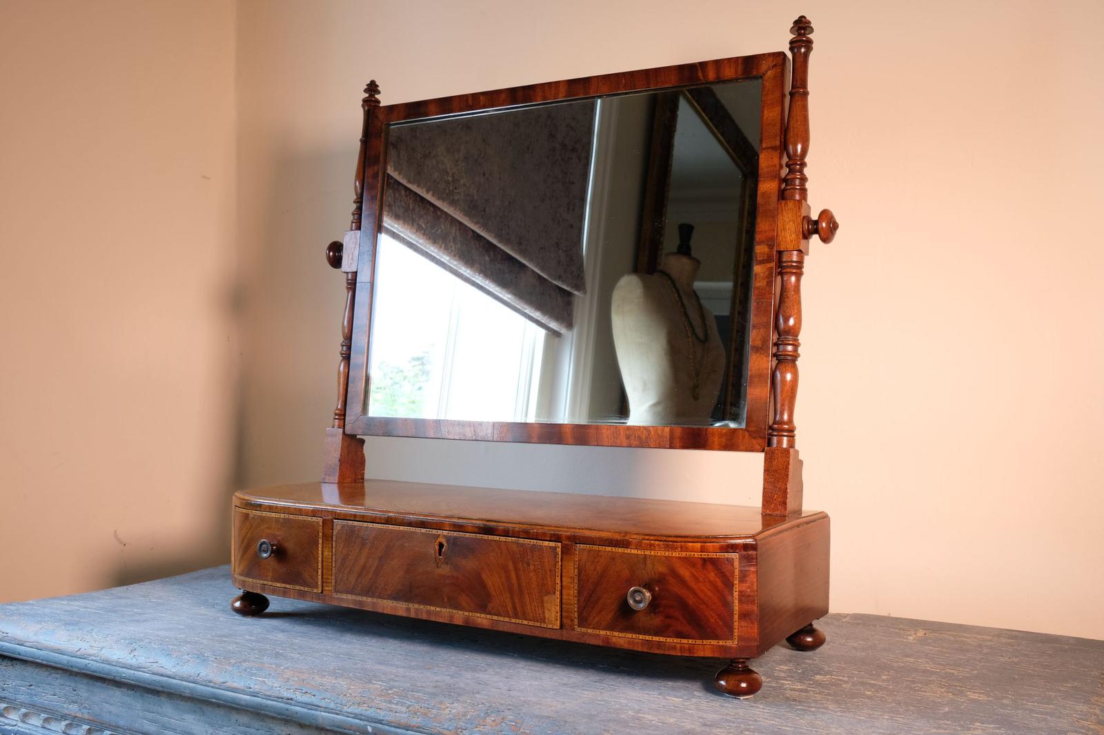 19th Century Mahogany Dressing Table Mirror with Three Drawers