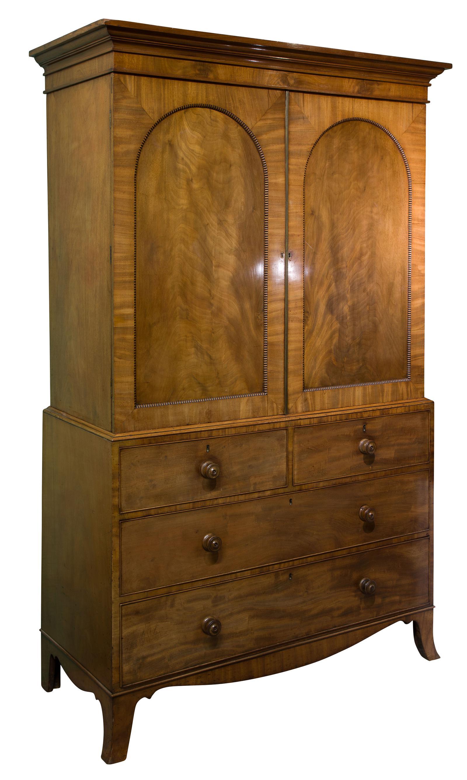 19th Century Mahogany Linen Press with Shelves & Drawers