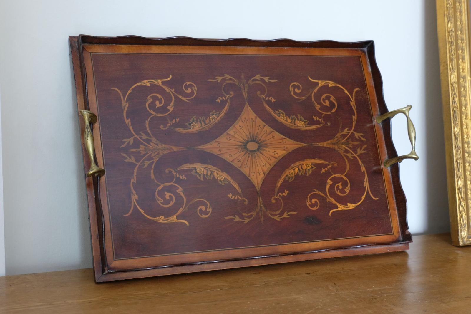 19th Century Mahogany Marquetry Inlaid Butlers Serving Tray