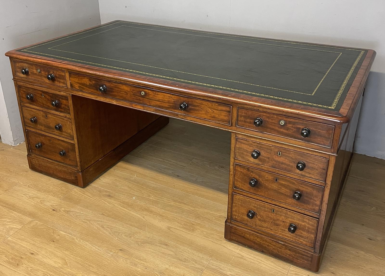 19th Century Mahogany Partners Desk with Inset Tooled Leather Top c.1870