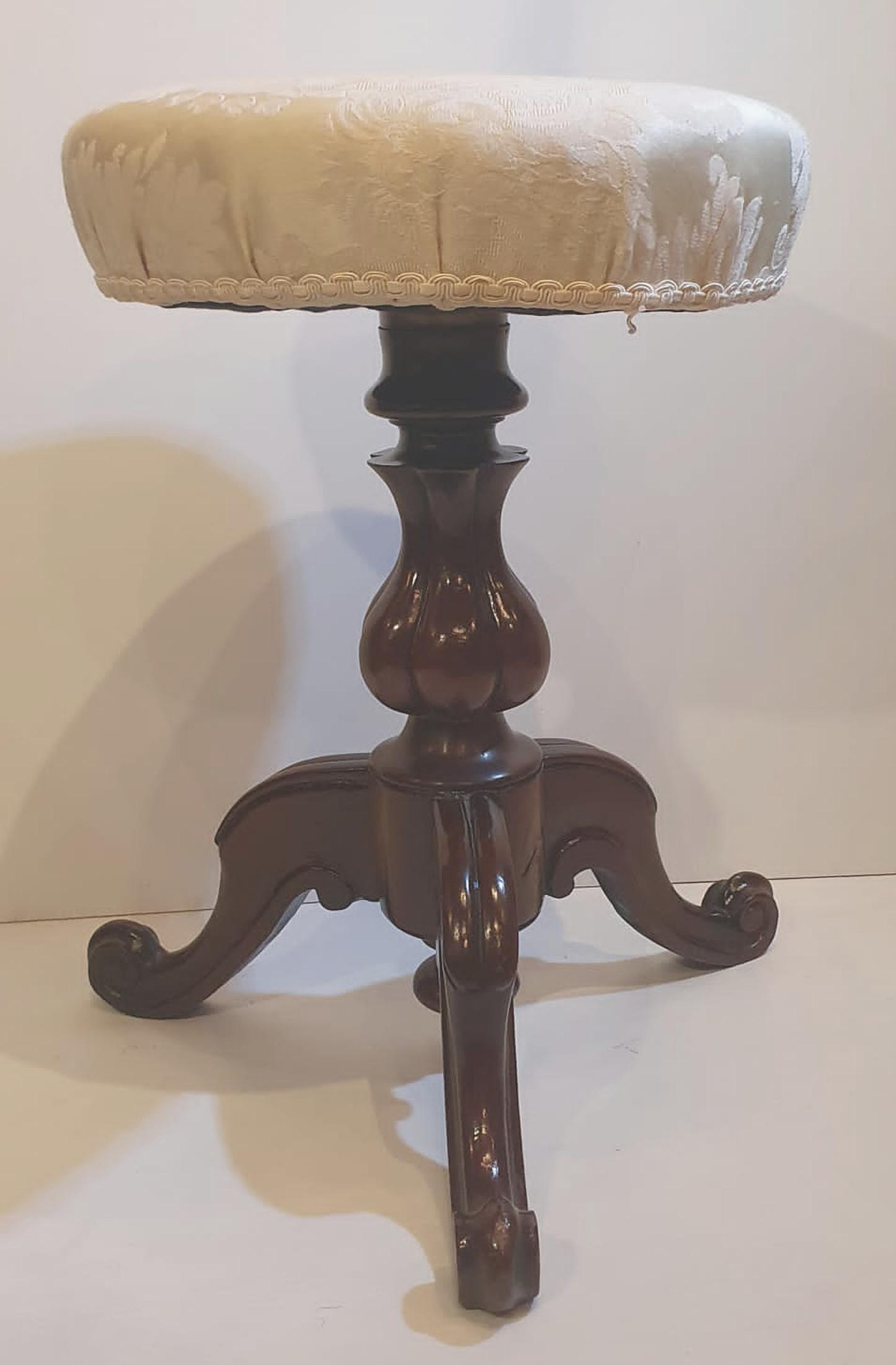 19th Century Mahogany Revolving Piano Stool