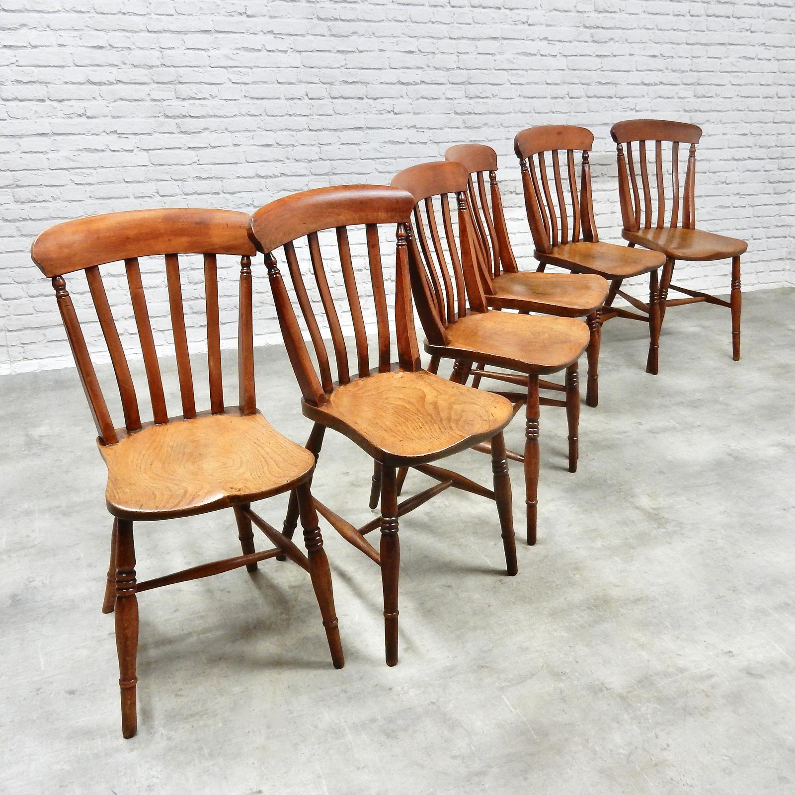 19th Century Matching Set of 6 Windsor Kitchen Chairs