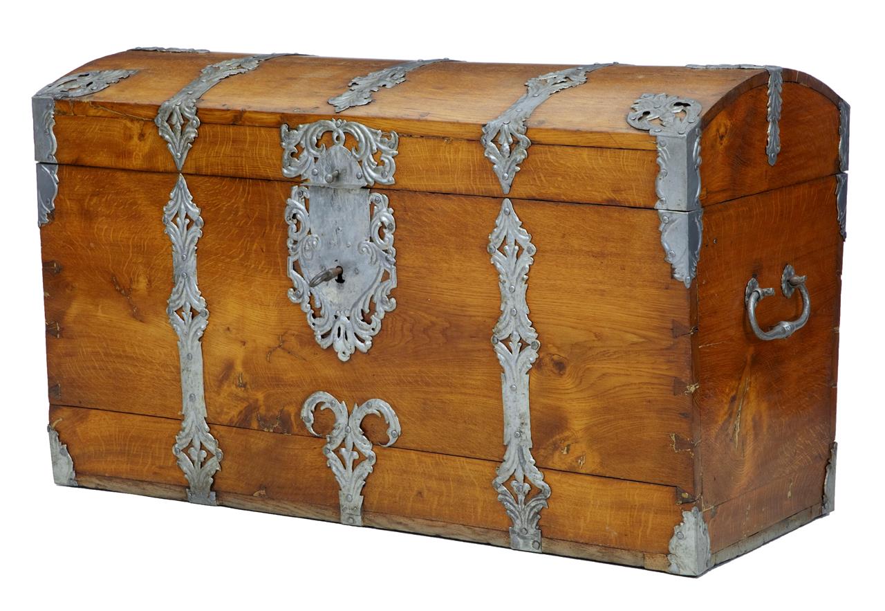 19th Century Metal Bound Oak Trunk Chest (1 of 1)