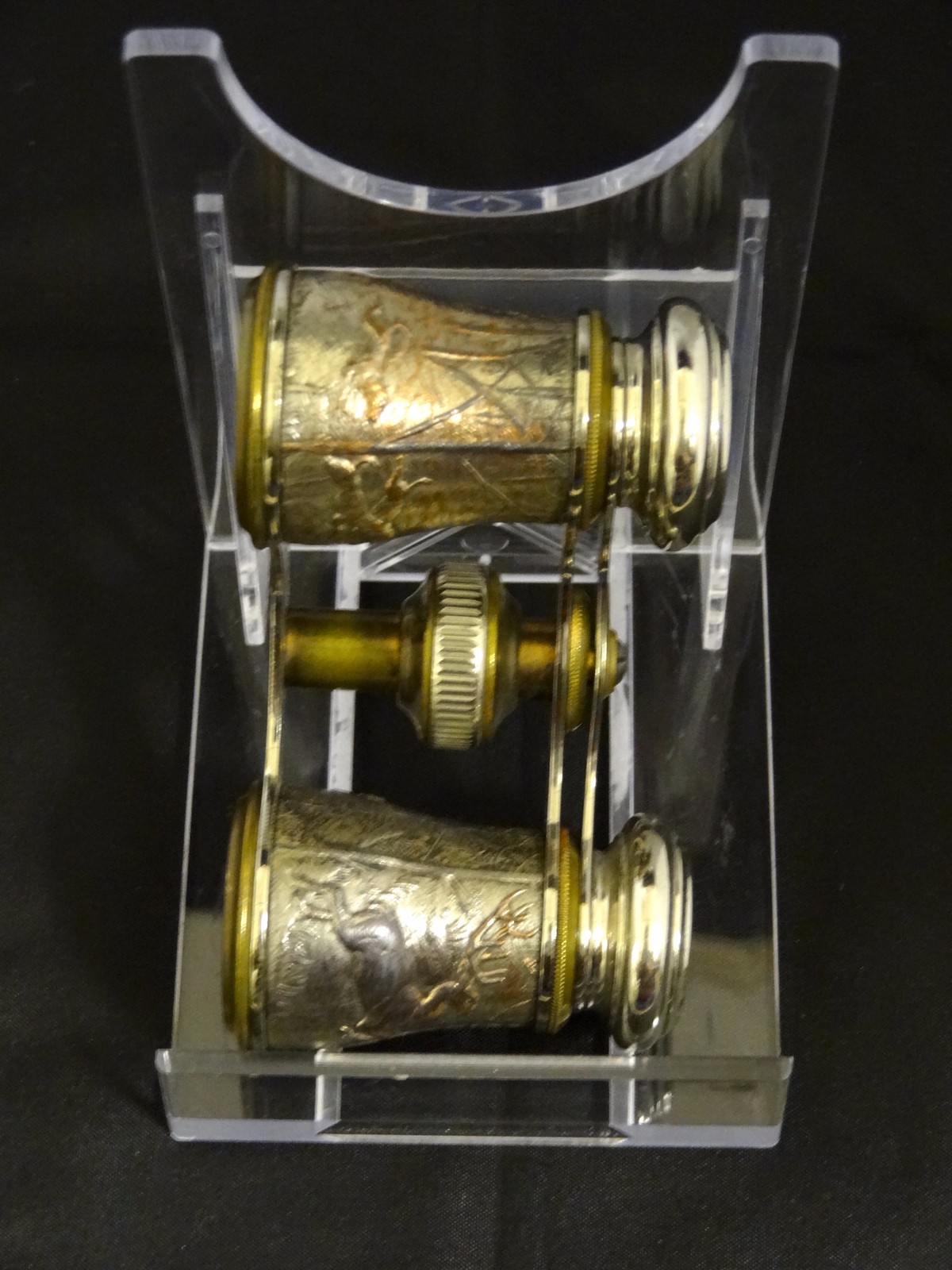 19th Century Metal Opera Glasses, Moulded Barrels 'Depicting a Hunting Scene'
