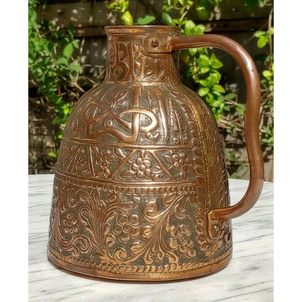 19th Century Middle Eastern Persian Antique Repousse Copper Water Jug