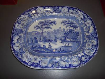 19th Century Middlesbrough Pottery Wild Rose Pattern Blue & White Platter c.1840