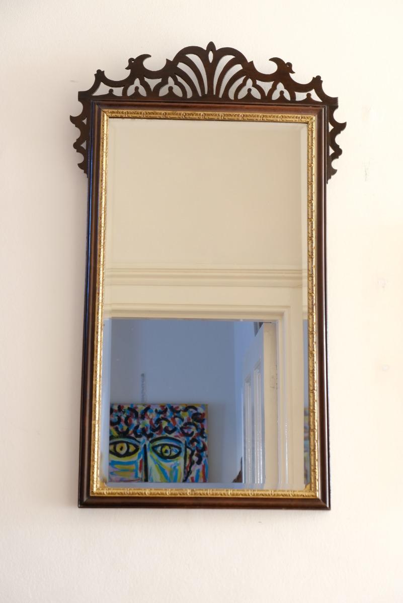 19th Century Mirror with Beveled Glass & Fret Work