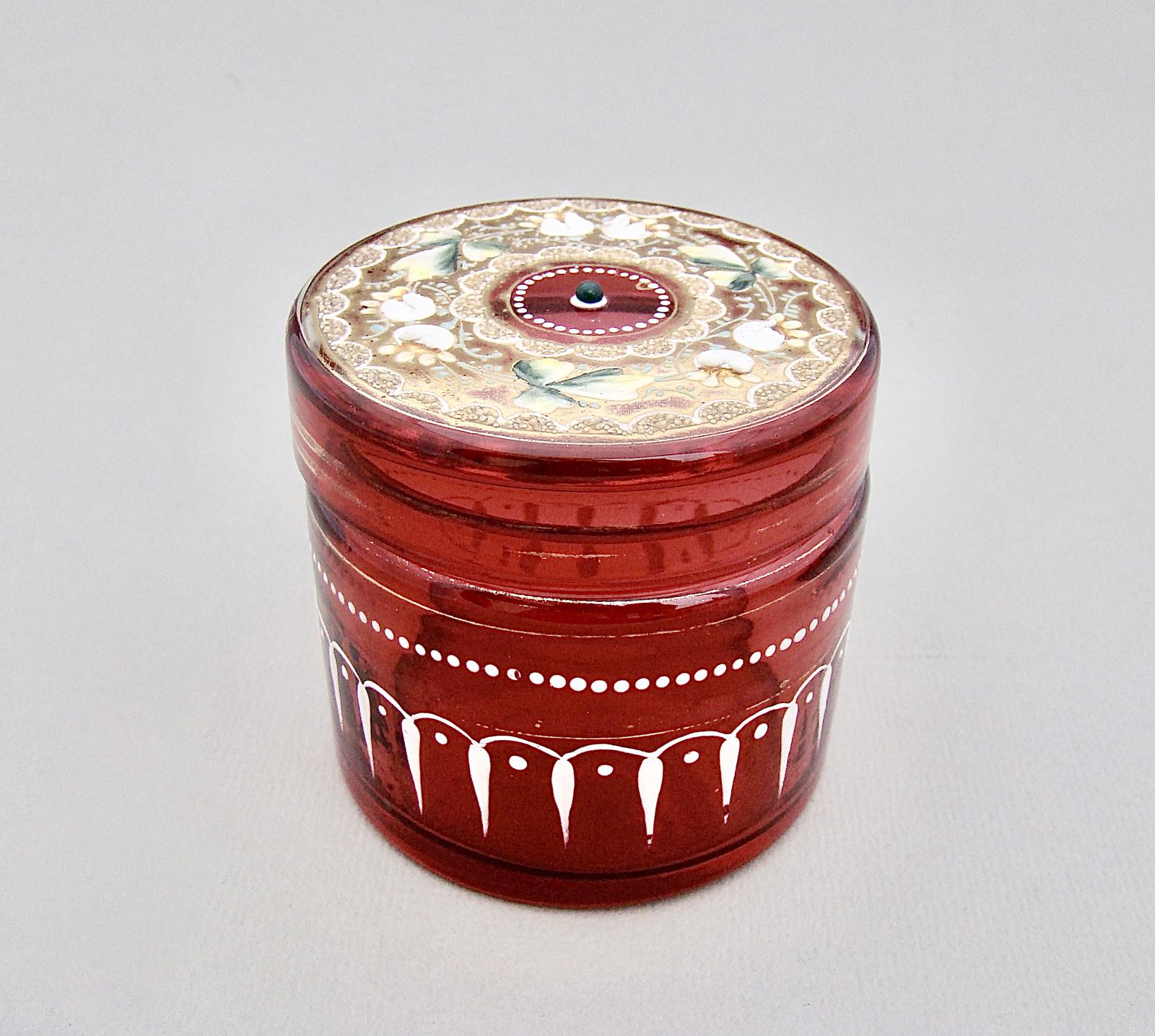 19th Century Moser Cranberry & Gilt Glass Dressing Table Jar c.1890
