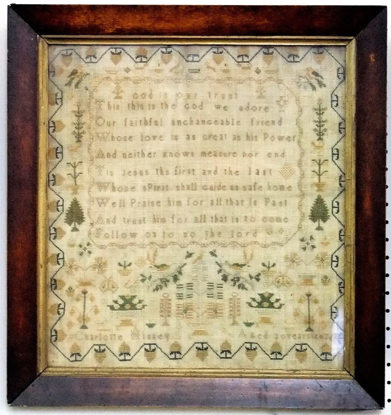 19th Century Needlework Sampler by Charlotte Hissey Aged 20 Yrs 1847