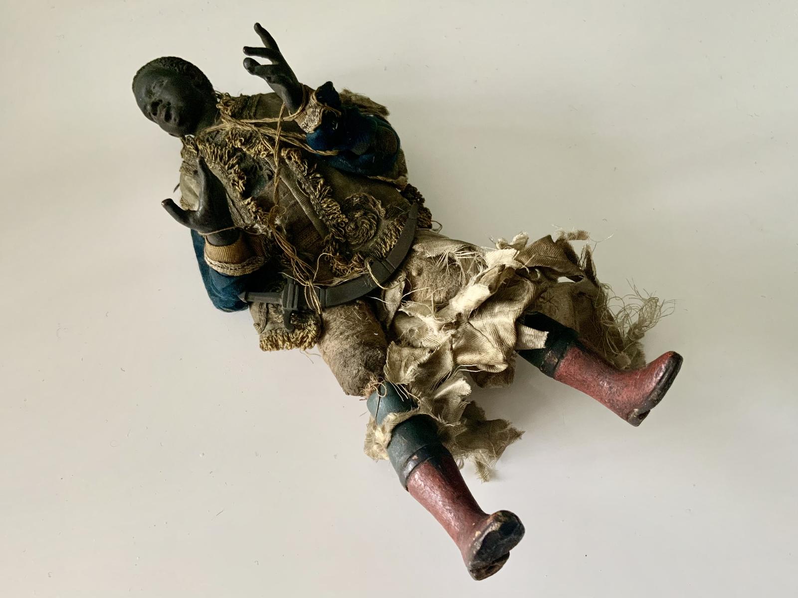 A wonderful 19th century (could be late 18th century) Neopolitan crèche figure. Original clothing, and sabre sword. Hoping the new owner can restore the clothing or can make new. The detailing on the face is just super. There is some damage to two of the fingers on one hand. Both legs are present although one requires attaching, leaving that to a new owner. Condition commensurate with age and use.