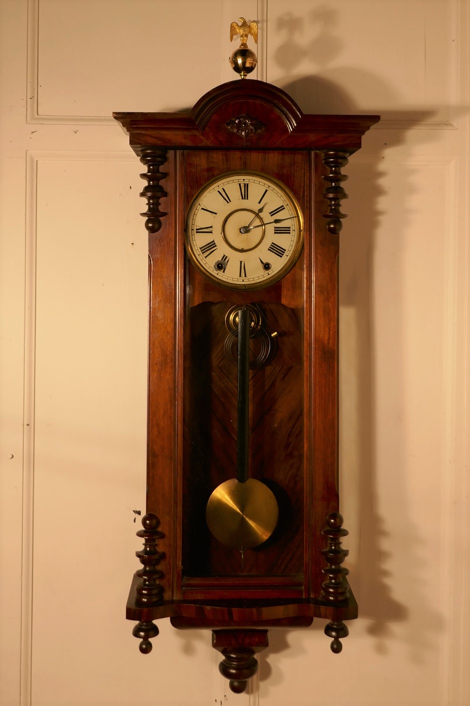 19th Century New Haven Walnut Vienna Regulator Eagle Clock