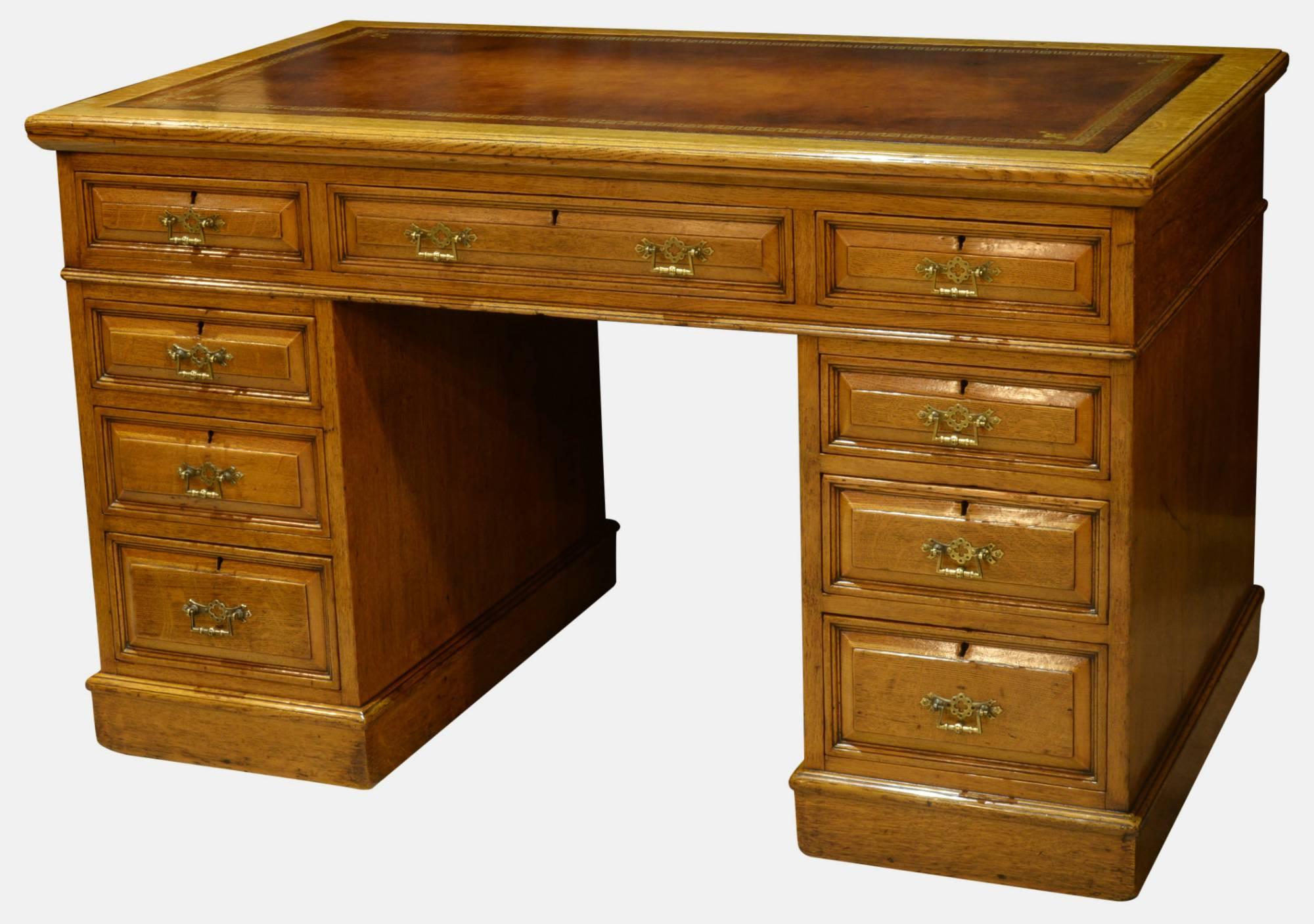 19th Century Oak 9 Drawer Pedestal Desk c.1890
