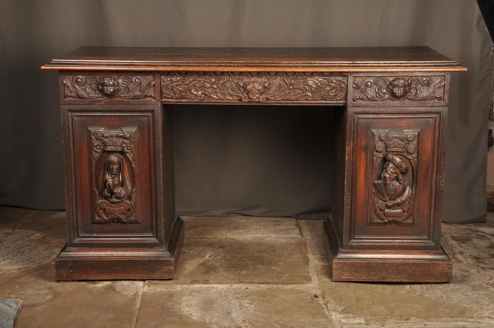 19th Century Oak Desk With 17th Century Carvings