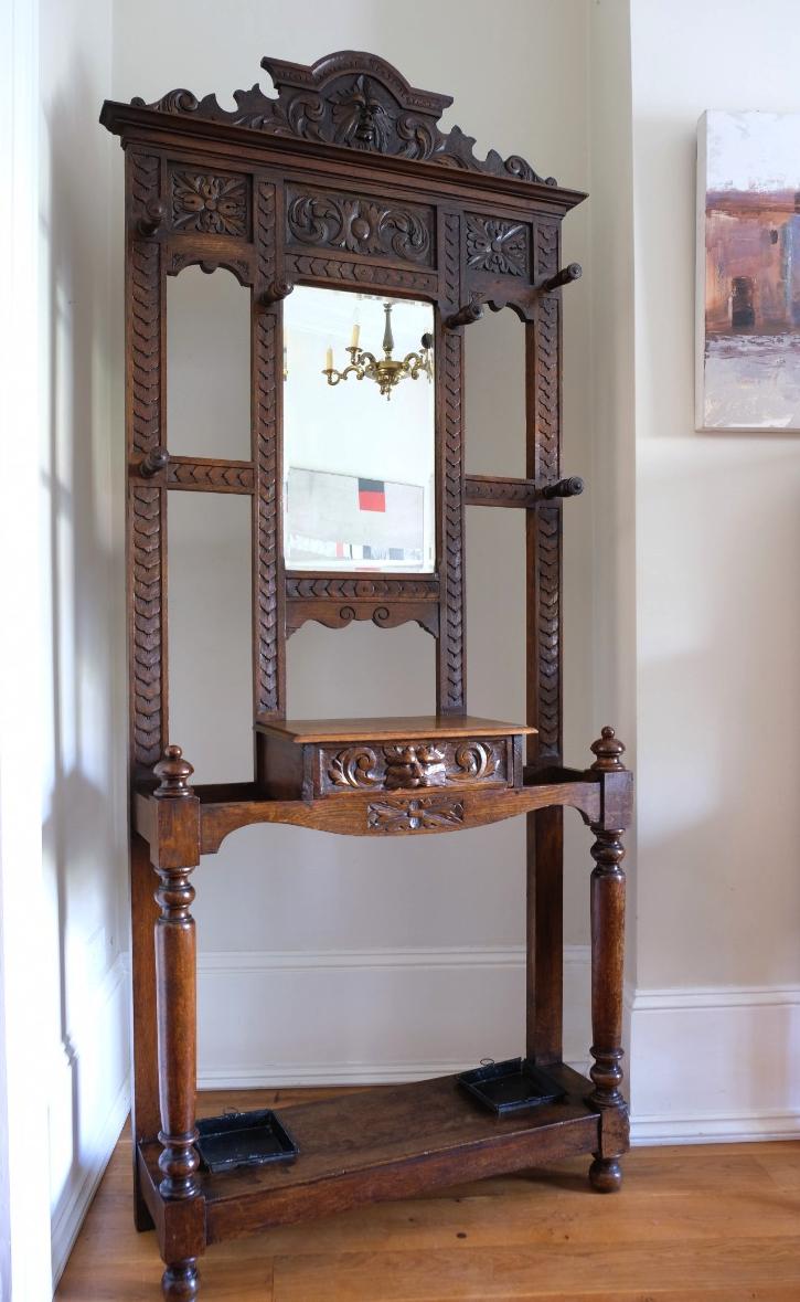 19th Century Oak Hall Tree Stick Stand Profusely Carved