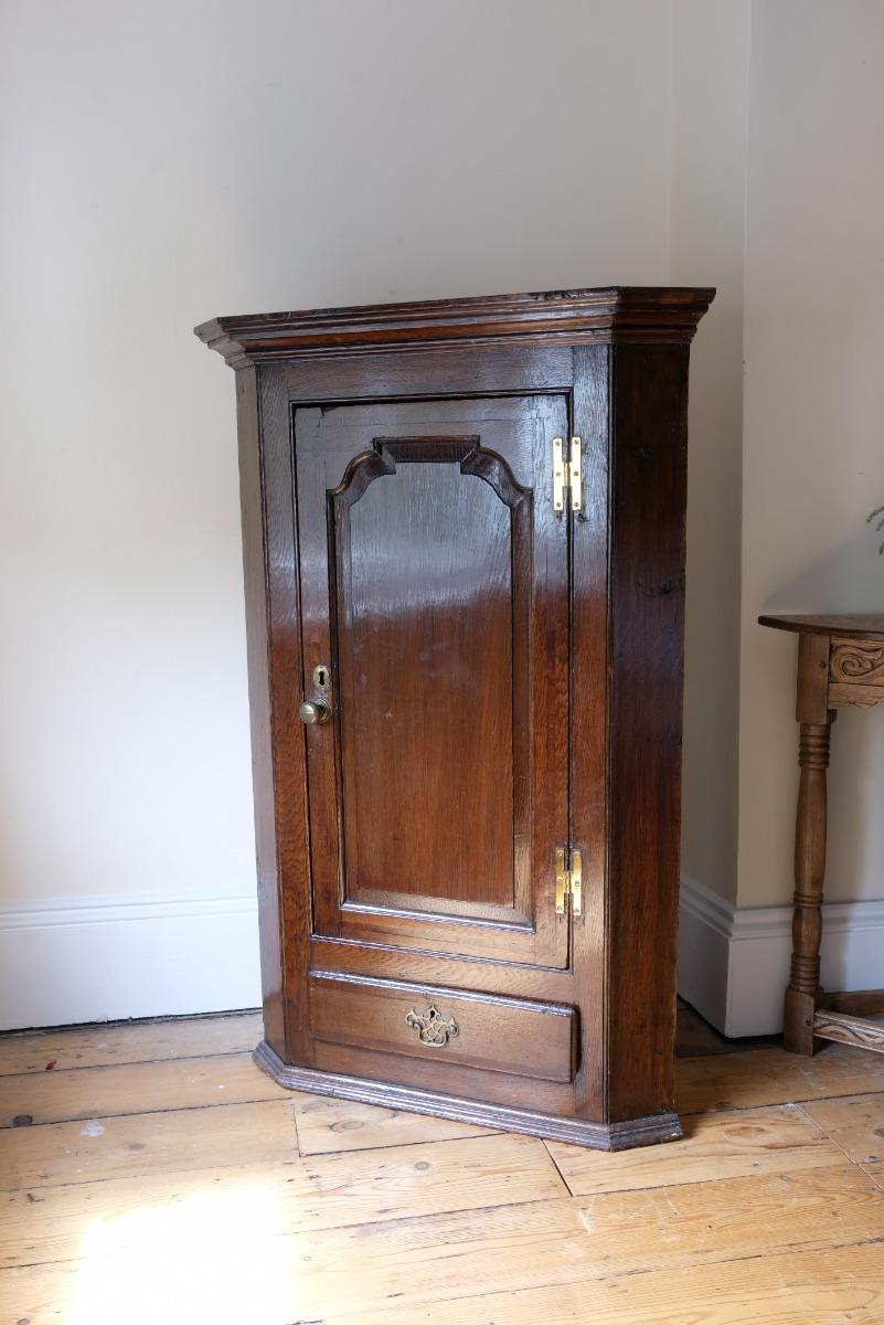 19th Century Oak Hanging Corner Cupboard with Drawer