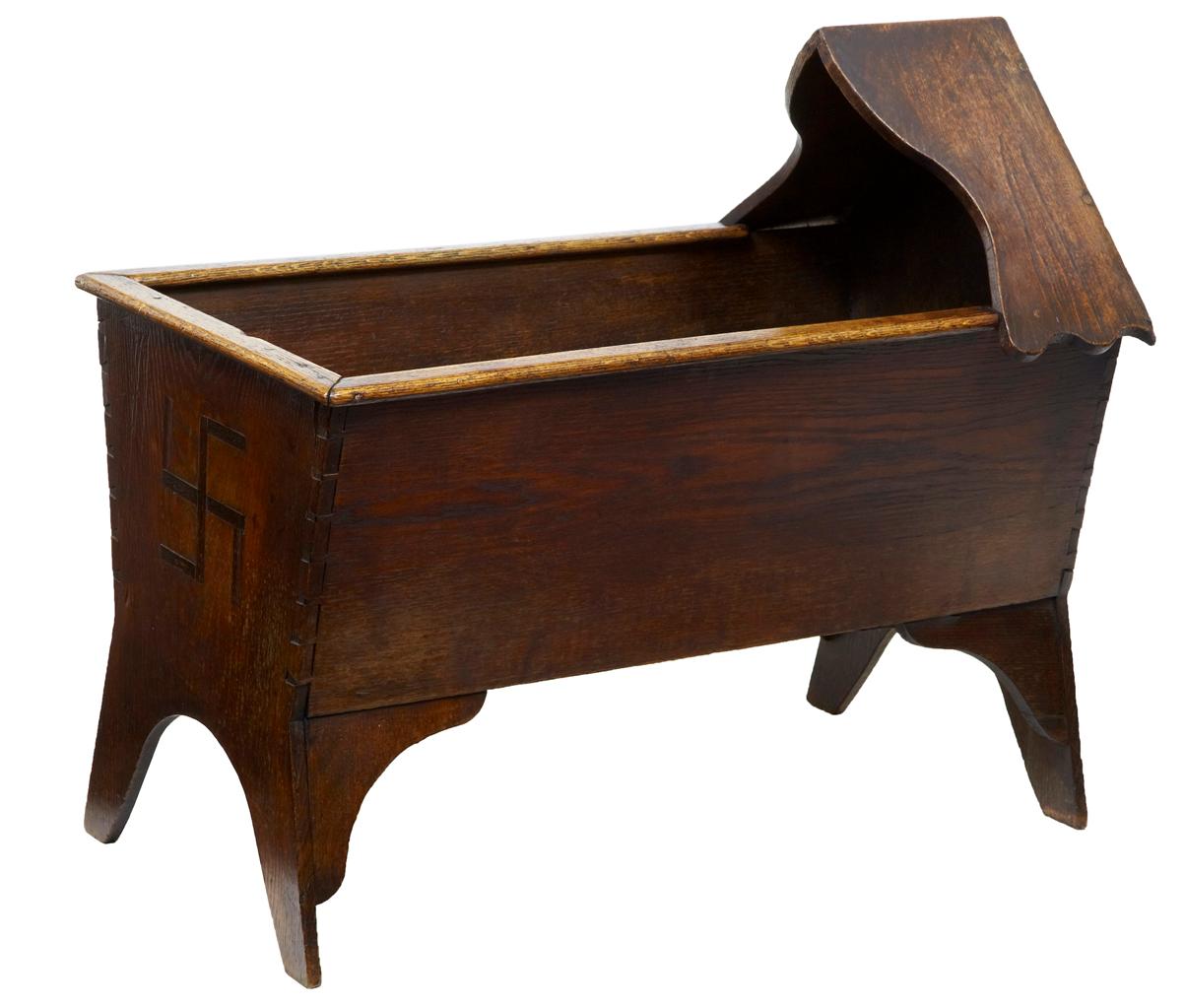 19th Century Oak Inlaid Childrens Crib (1 of 1)