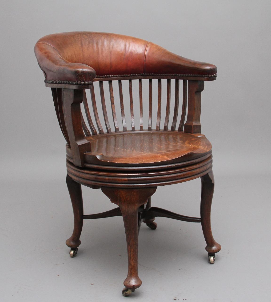 19th Century Oak & Leather Swivel Desk Chair (1 of 9)