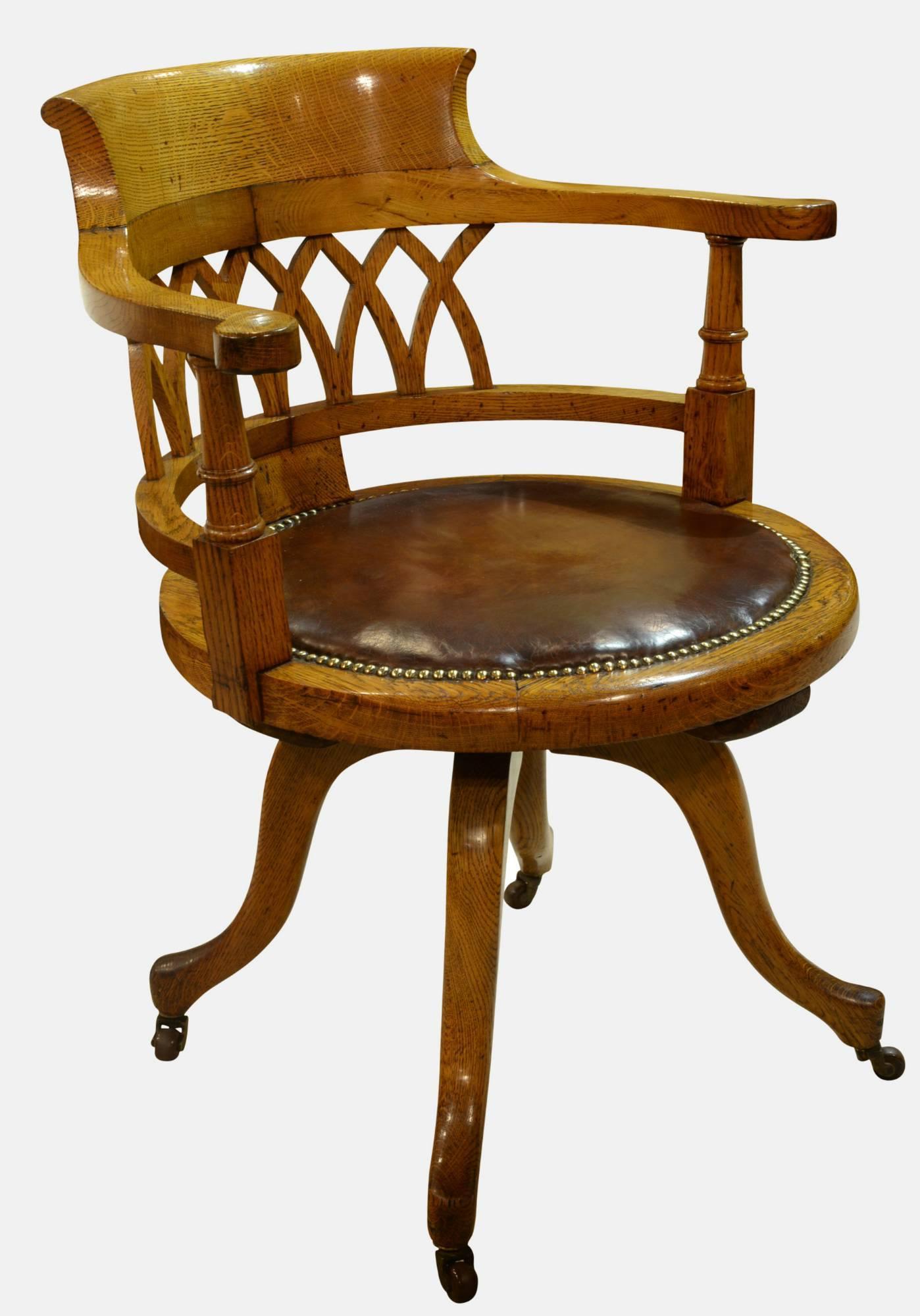 19th Century Oak & Leather Swivel Desk Chair c.1880