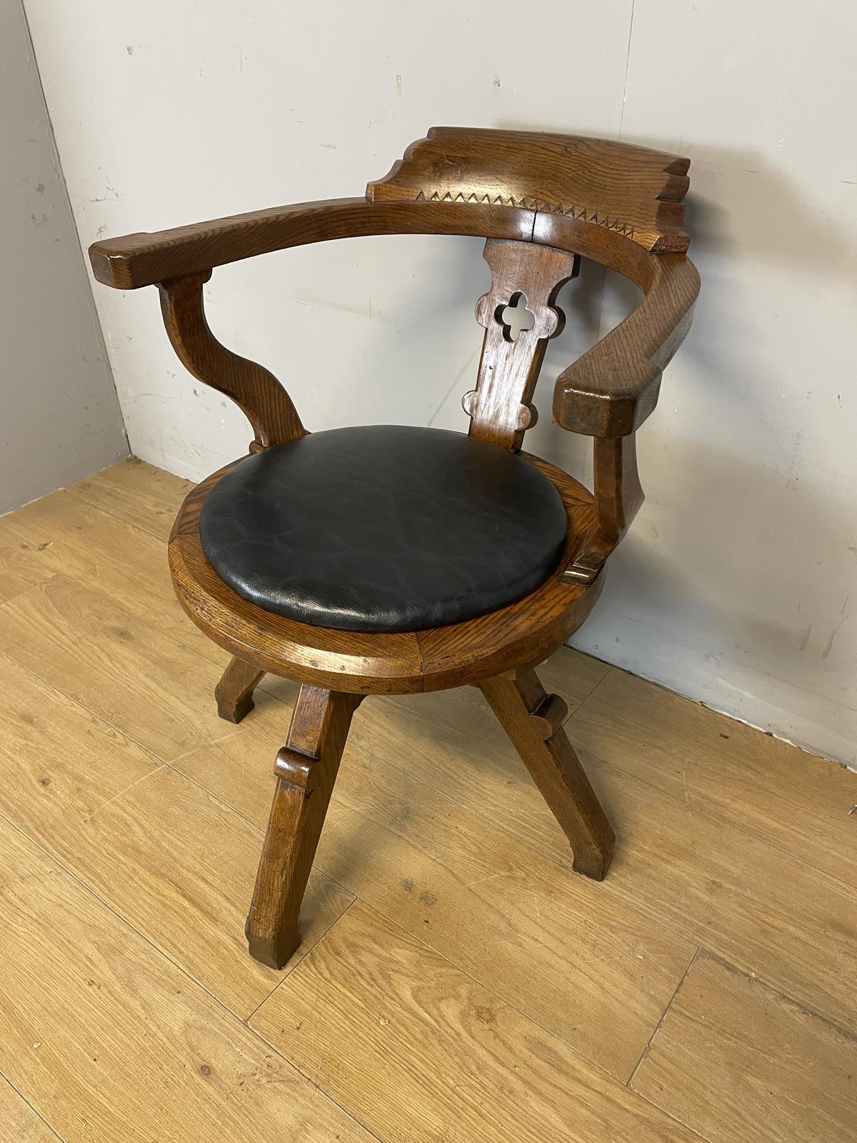 19th Century Oak Revolving Desk Chair with Leather Seat