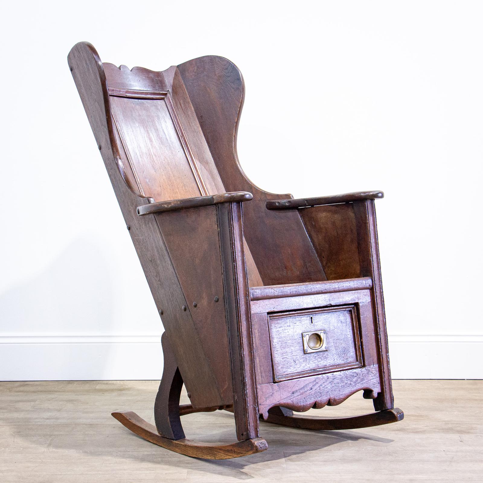 19th Century Oak Rocking Lambing Chair with Bucket Shape