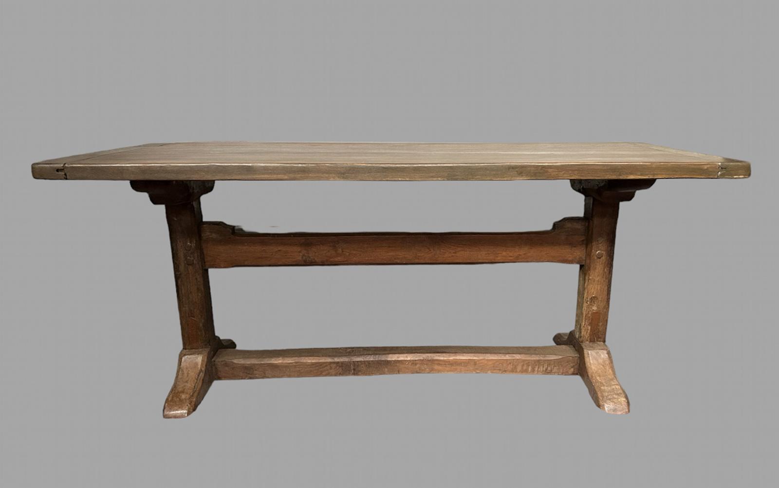 19th Century Oak Trestle Dining Table / Kitchen Table