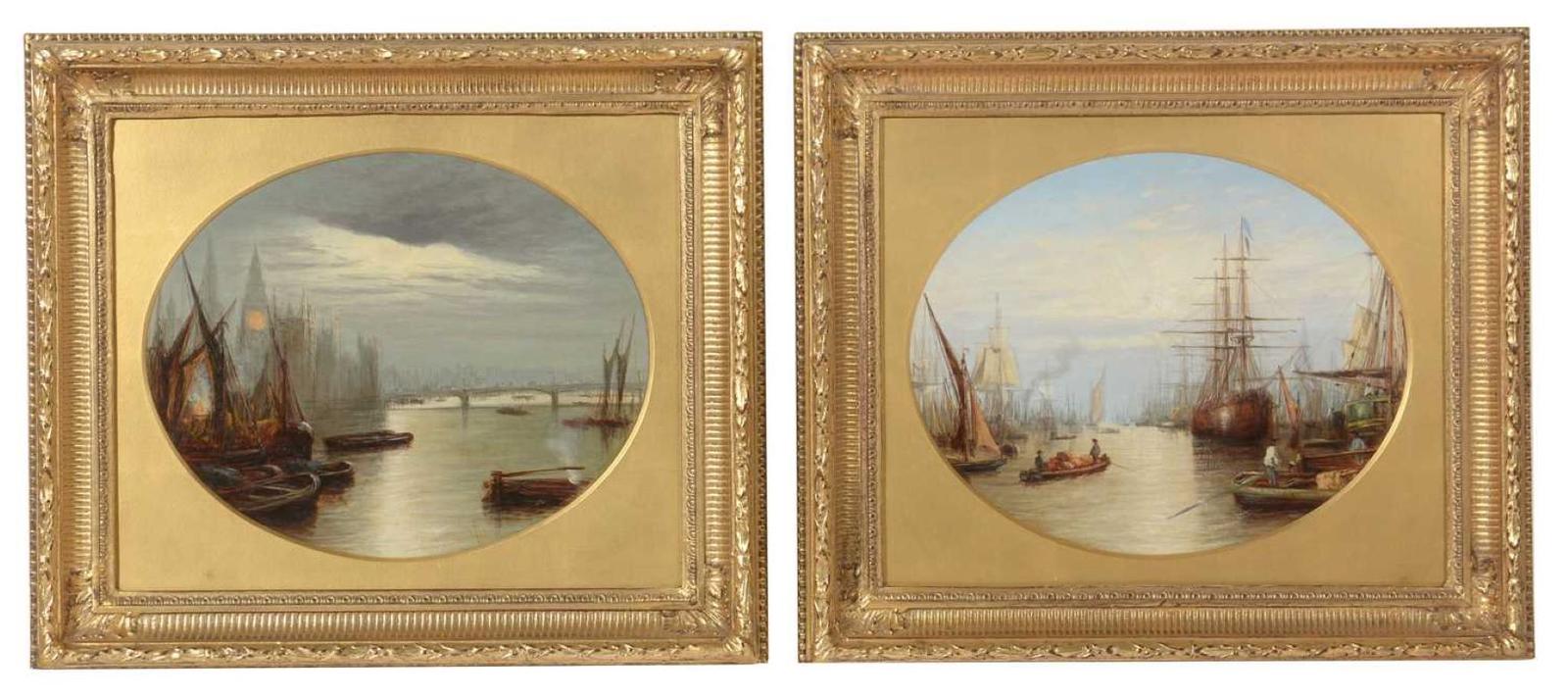 19th Century Oil London Thames, Parliament - Francis Moltino