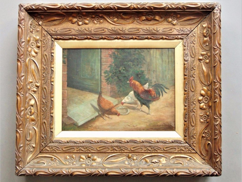 19th Century Oil On Canvas James Clark Poultry in Farmyard (1 of 1)