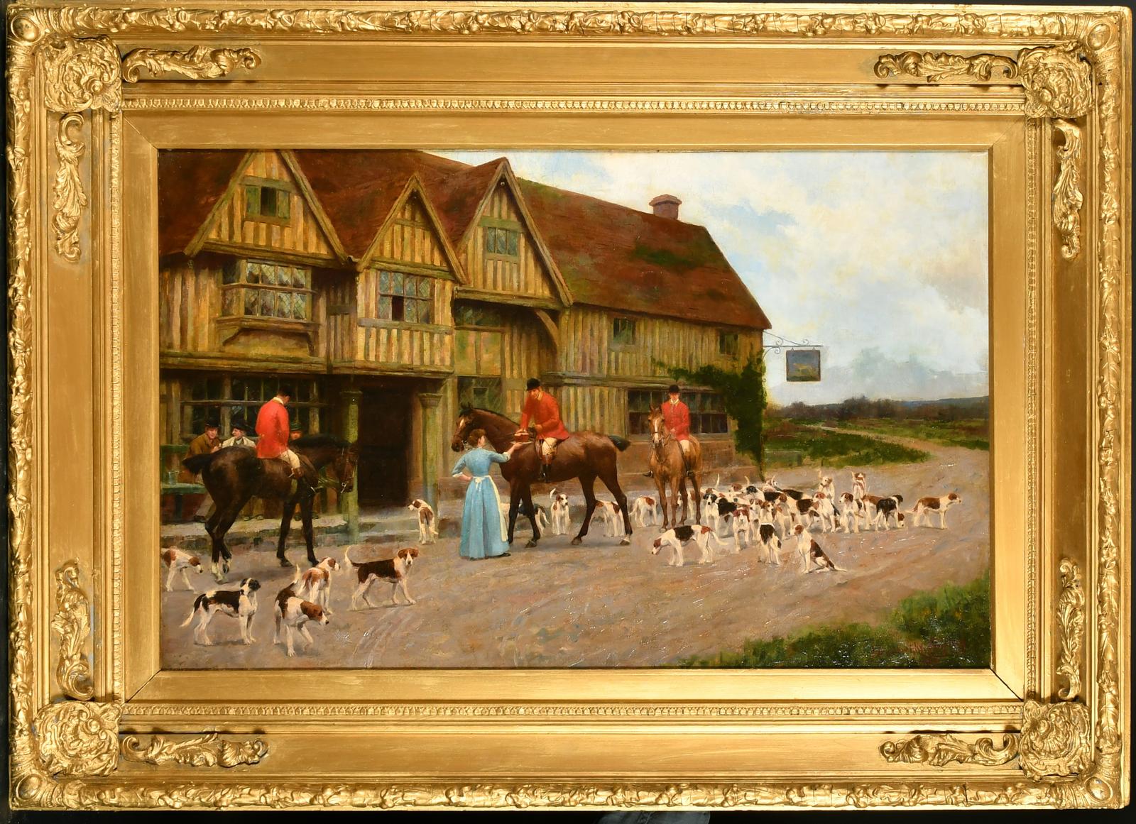 19th Century Oil on Canvas of Horse & Dogs - Frank Proschwitzry Freyburg