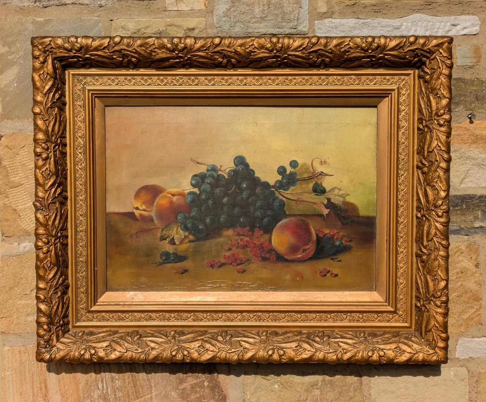 19th Century Oil on Canvas Still Life with Peaches & Grapes
