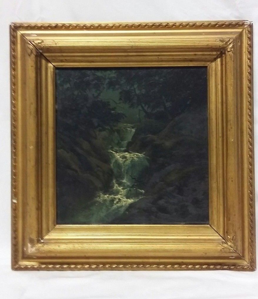 19th Century Oil On Panel 'Moonlit Landscape' Painting by Saaby Bjergbaek C.1860
