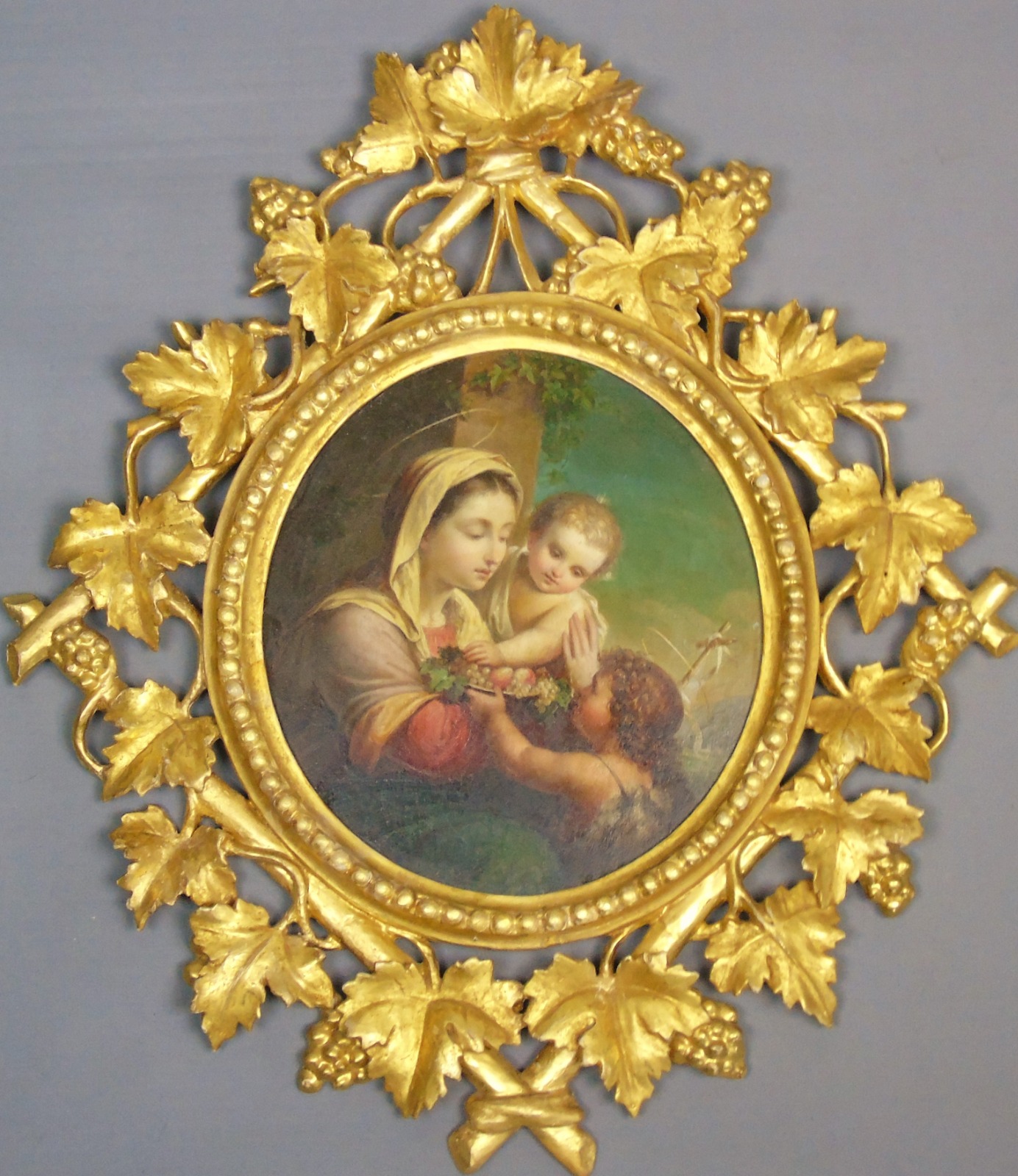 19th Century Oil Painting After Annibale Carracci Madonna & Child